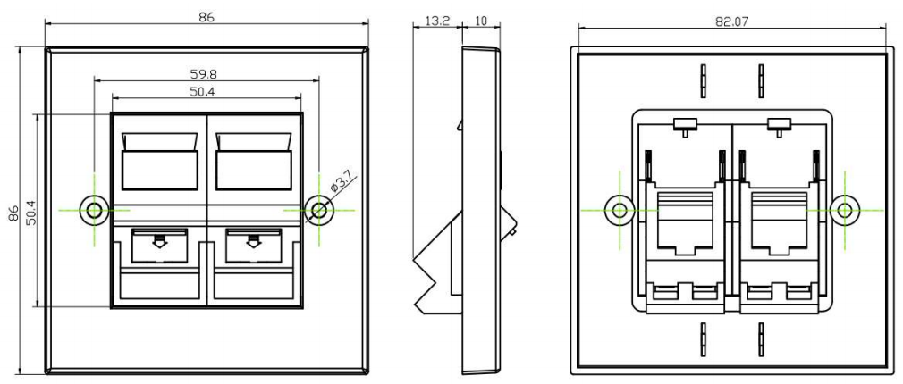 Kết nối đa phương tiện: Faceplates với các cổng đa phương tiện được sử dụng để cung cấp kết nối cho âm thanh, video và dữ liệu trong các khu vực như phòng hội nghị, trung tâm đa phương tiện hoặc cơ sở giáo dục. Họ cung cấp một giải pháp tập trung và có tổ chức để kết nối các thiết bị khác nhau và tạo điều kiện giao tiếp và hợp tác.