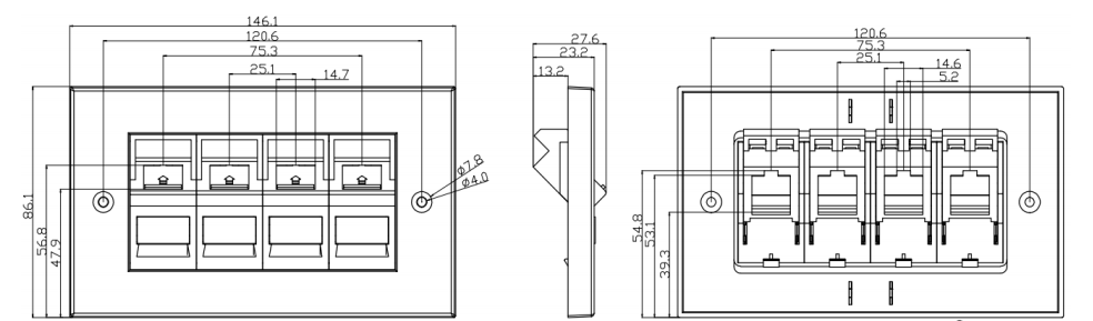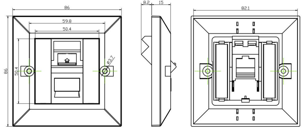 Dữ liệu và mạng thoại: Trong cài đặt mạng, FacePlates được sử dụng để chấm dứt cáp mạng và cung cấp các điểm kết nối cho các thiết bị như máy tính, điện thoại và bộ định tuyến. Faceplates thường có các cổng trong đó các giắc cắm hoặc đầu nối mô -đun có thể được chèn, cho phép các kết nối mạng thuận tiện và có tổ chức.