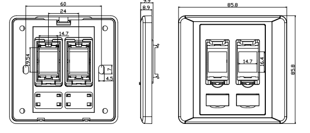 Việc gắn hoặc lõm: Các mặt cổng có thể được gắn trên, nơi chúng ngồi phẳng trên tường hoặc bề mặt, hoặc gắn liền với nhau, nơi chúng được đặt sâu hơn một chút vào tường. Sự lựa chọn giữa các tùy chọn này phụ thuộc vào thẩm mỹ mong muốn và yêu cầu độ sâu của các đầu nối được cài đặt.