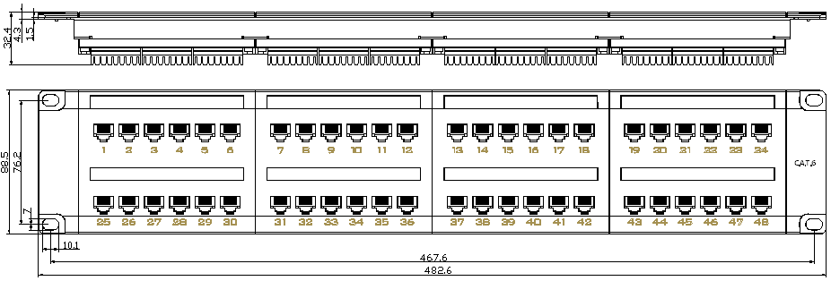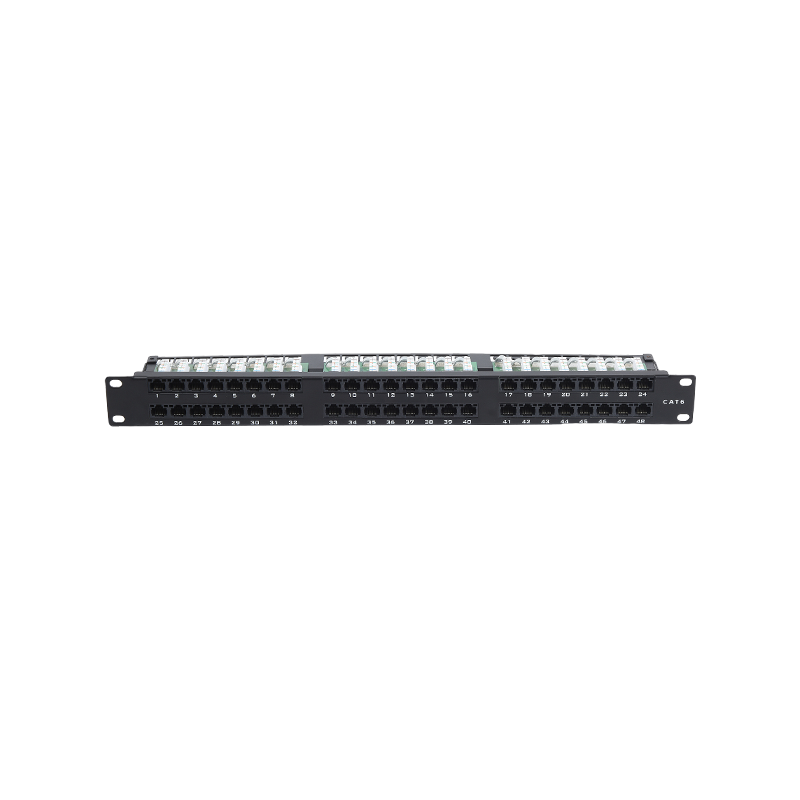 Bảng vá CAT5E/CAT6/CAT6A: Các bảng vá này được thiết kế đặc biệt để chấm dứt và quản lý cáp Ethernet Cat5e, Cat6 hoặc Cat6a. Họ cung cấp nhiều cổng để phù hợp với kết nối cáp Ethernet từ các thiết bị mạng khác nhau như máy tính, công tắc, bộ định tuyến và máy chủ. Chúng thường có sẵn trong các cấu hình như 24 cổng, 48 cổng hoặc cao hơn và hỗ trợ tốc độ truyền dữ liệu lên tới 10 Gigabit Ethernet.